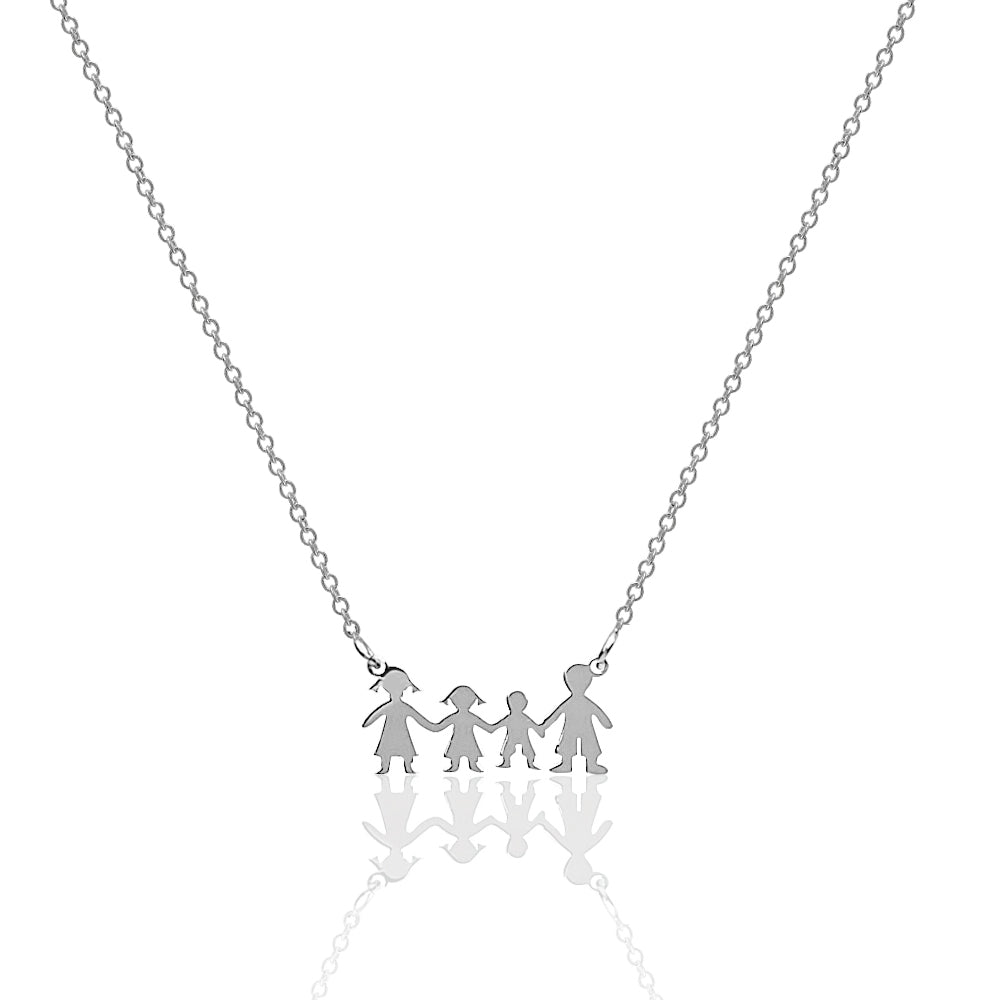 - Family necklace with mom, dad, son and daughter in rhodium-plated 925 silver. Symbolic gift with packaging included and guaranteed Italian artisan quality.