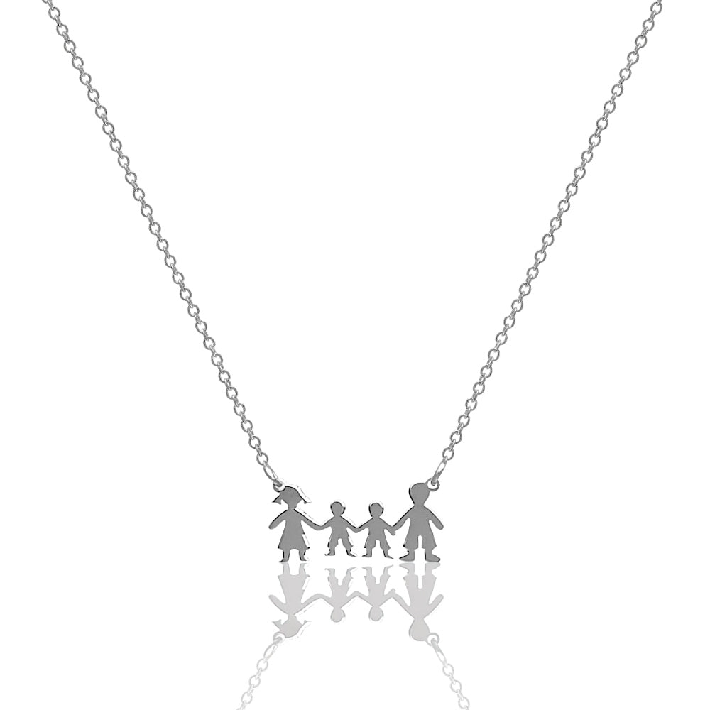 - Collana famiglia con mamma, papà e due figli in argento 925 rodiato. Regalo simbolico con confezione inclusa e qualità artigianale italiana garantita.